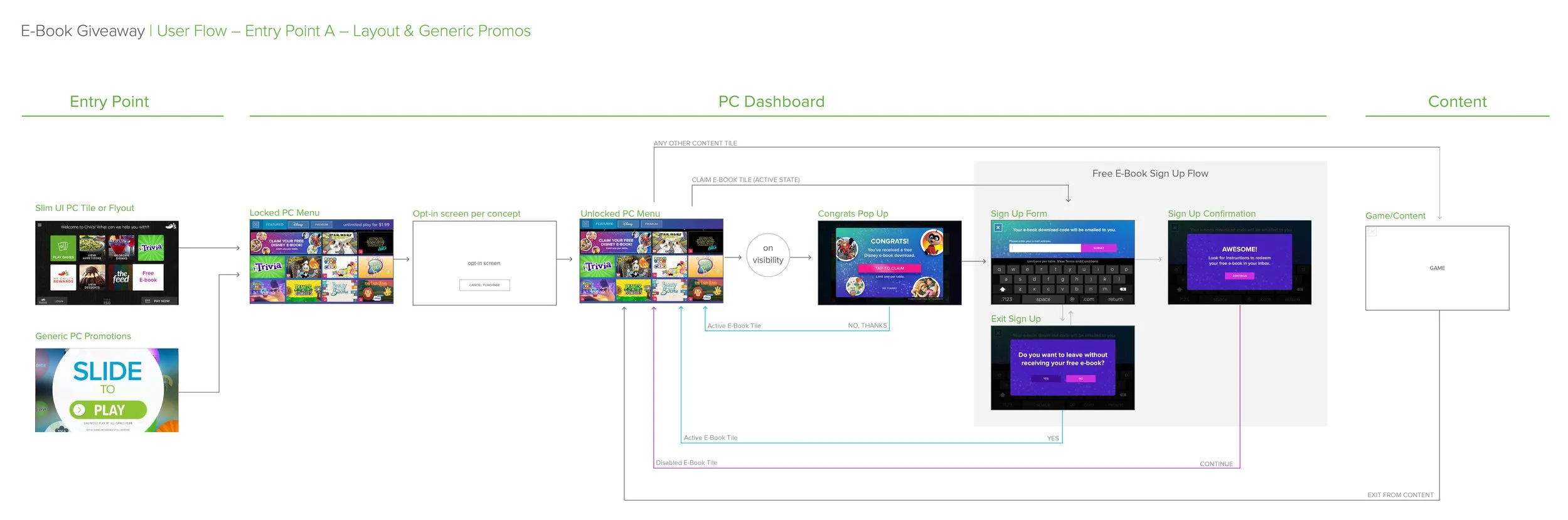 My role: I assisted the UX designer in creating the user flow for the Disney Dashboard in Ziosk’s Premium Content section.